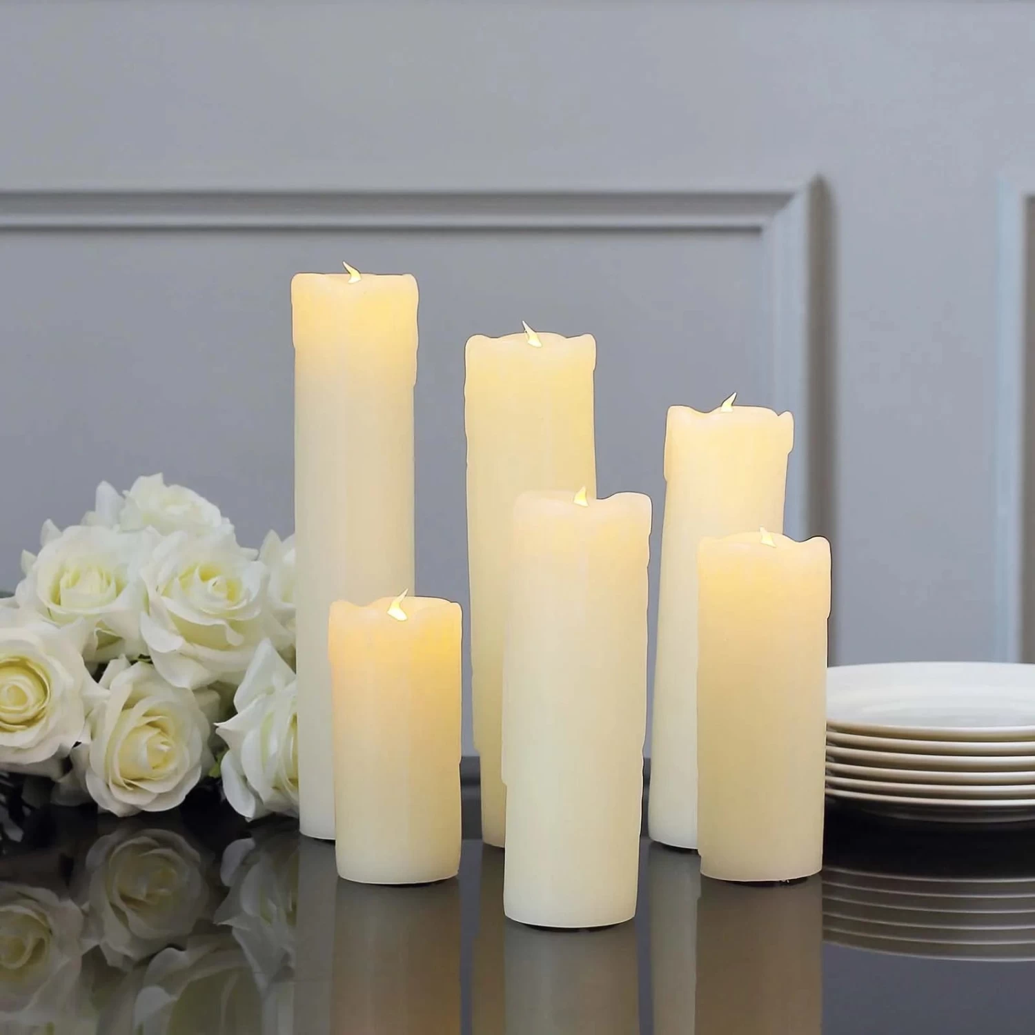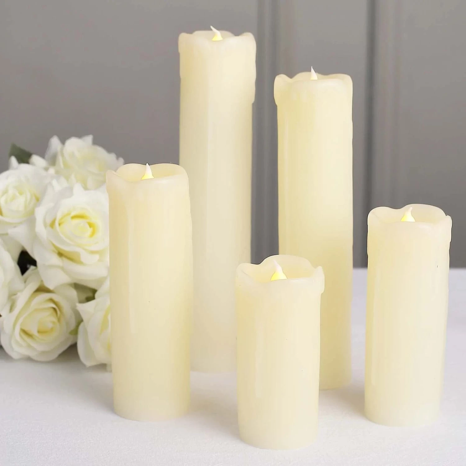 There are no more worries about burning flames or dripping wax with these charming LED candle lights! Featuring pillar candles look with a dripping wax design, these battery-operated LED candle lights are sure to create a romantic ambiance for your wedding, events, parties or even to your own home. Put them on your dinner tables and make every meal with your loved ones extra special.