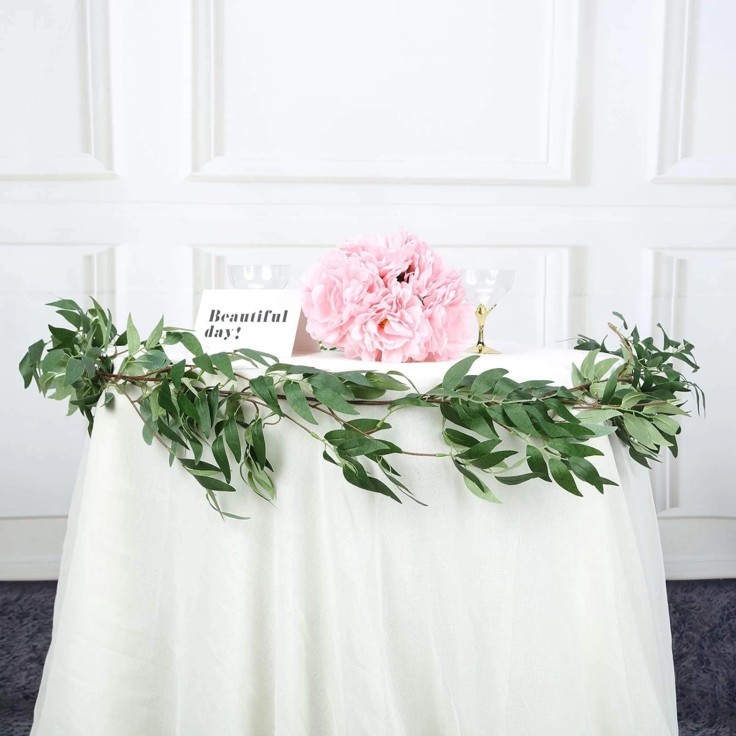 Decorating is simple with these classic green leaves garlands. Whether to grace an aisle, home, stairway, or arch decorations, these great quality artificial greenery garlands will create a warm and welcoming atmosphere for your guests. This lush green garland gives a fresh, clean look to any space and would look lovely on the mantle, over the cabinets, or strung on the stairs.