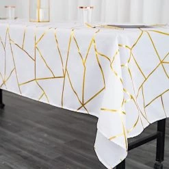 Add elegance to your party and accessorize your tables with dazzling rectangular tablecloths! This dining tablecloth will add style to your table decorations. High-quality polyester fabric with a sparkling foil geometric pattern will create a modern look for your table setting. Whether for small family dinners, get-togethers, weddings or any special events, this rectangle tablecloth is just perfect to dress up your party tables!