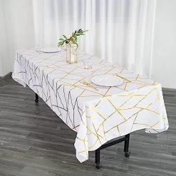 Add elegance to your party and accessorize your tables with dazzling rectangular tablecloths! This dining tablecloth will add style to your table decorations. High-quality polyester fabric with a sparkling foil geometric pattern will create a modern look for your table setting. Whether for small family dinners, get-togethers, weddings or any special events, this rectangle tablecloth is just perfect to dress up your party tables!