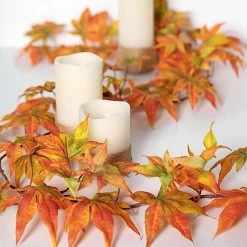 This artificial fall maple leaf garland will add a colorful touch to your everyday decor! Featuring realistic silk maple leaves in autumn colors flowing from a bendable stem, this foliage garland will create a seasonal decor for your home, wedding, holiday dinner, Thanksgiving, parties or any special occasions. Use it as hanging decorations, accent for your front doors, windows, mantles or pair it with elegant candles or string lights to make a picture-perfect table centerpiece.