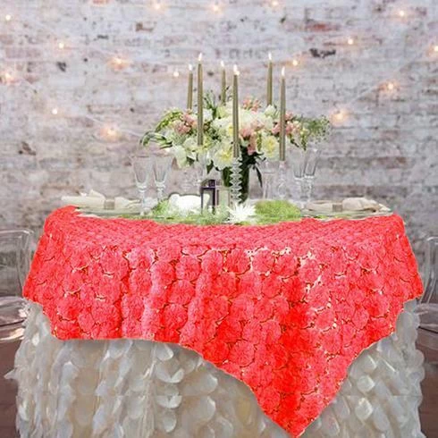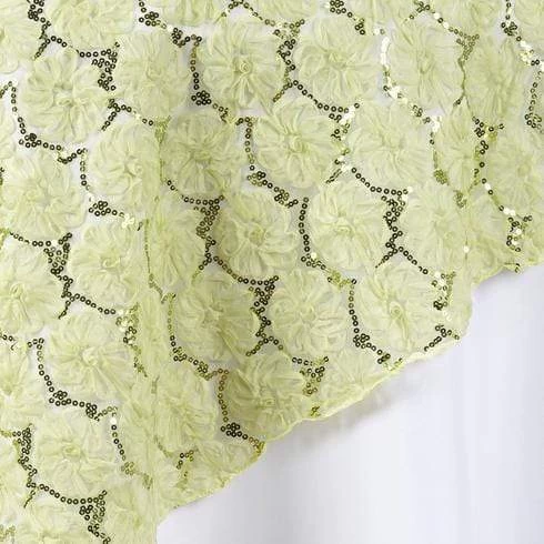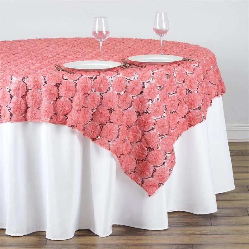 Brand new high-quality satin ribbons on sequined lace netting overlays! Sequined lace with ribbon flowers overlays from Balsa Circle will make your event look luxurious without spending a fortune! Dazzling sequined lace and satin ribbons crafted into flowers make these overlays perfect for weddings or romantic dinners!