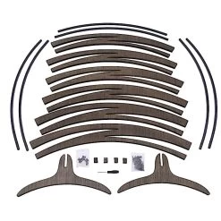 Comes with 6 curved poles, 2 curved base legs, 6 connecting rails, a bag of assembly tools and an instruction manual.