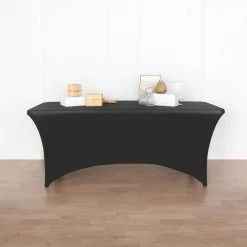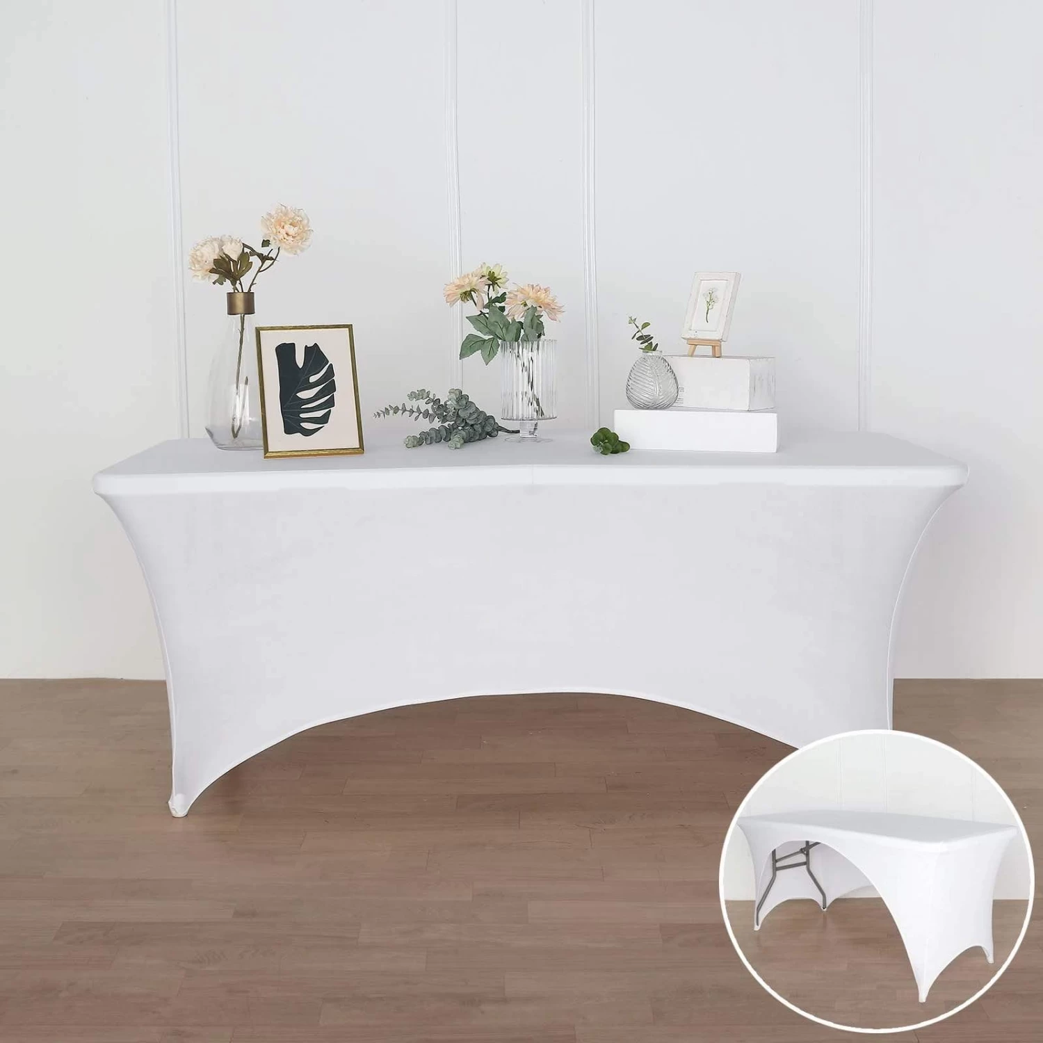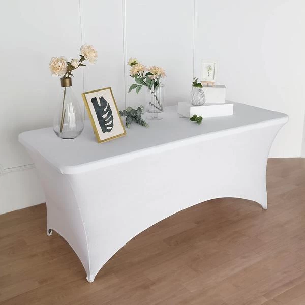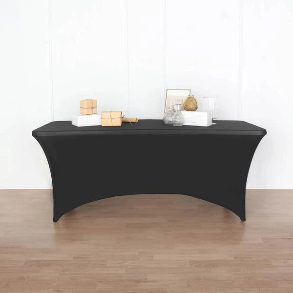 Transform your tables into an elegant display with rectangular stretch spandex table covers! Ideal for weddings, parties, banquets, events or any special occasions, these high quality spandex tablecloths are perfectly designed to snug-fit your 96″ x 30″ rectangular tables. The curved open back on one side will allow you to conveniently access and store things under the table. These four-way stretch linens will just simply create an outstanding character and elegance for your dining tables. Mix and match with other dining decorations for a truly impressive party setup.