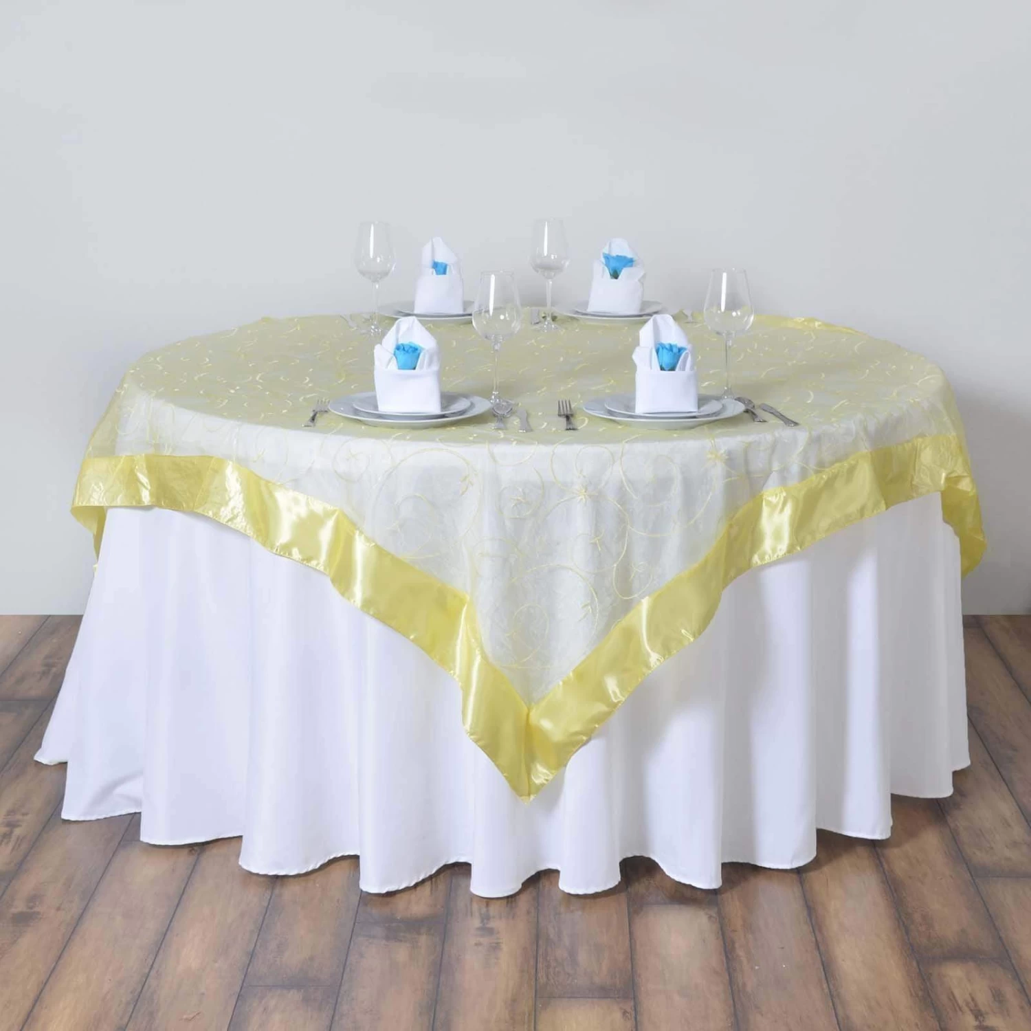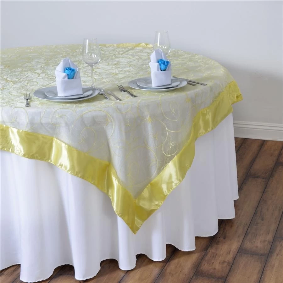 Crafted from a high quality sheer organza fabric, these gorgeous square table overlays will create an inviting ambiance for your guests. These overlays with satin edges and embroidered swirls will dress up your party tables with welcoming character and elegance. With a variety of colors to choose from, these table linens are perfect for your weddings, parties, events and any special occasions.
