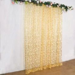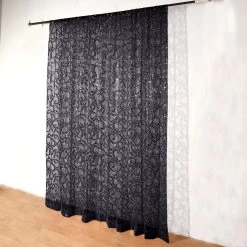 This backdrop curtain is perfect for creating an elegant atmosphere for weddings, parties, events and trade show booths. High-quality sheer tulle fabric with embroidered leaves design and sparkling sequin accents will create an impressive look for your party setting. This curtain is designed with top and bottom rod pockets so you can simply slide it into your backdrop stands to create an extra stylish look for your party or photography background. Pair this backdrop curtain with other fabric drapes, monogram or accent it with fairy lights or garlands to express your decorating style. You can also use it to decorate your home after the party is over. The possibilities are endless!