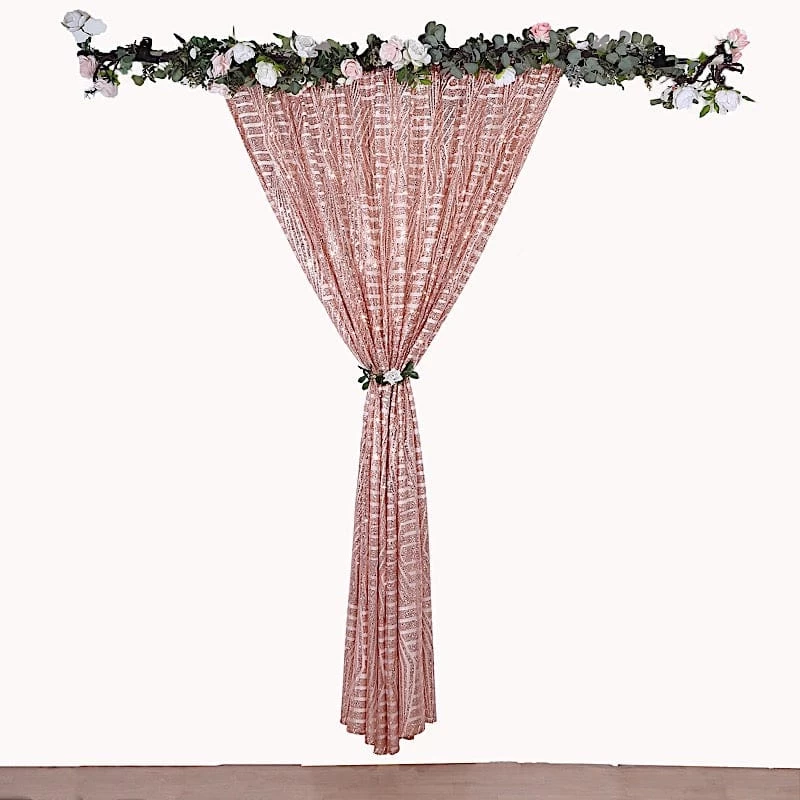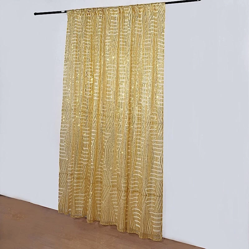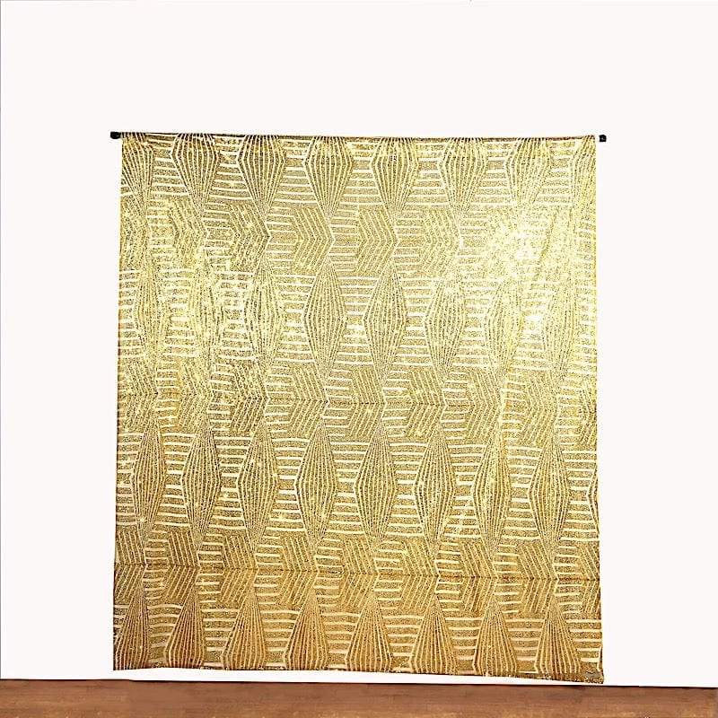 This backdrop curtain is perfect for creating an elegant atmosphere for weddings, parties, events and trade show booths. High-quality mesh fabric with a sequined geometric design and satin backing will create a dazzling look for your party setting. This curtain is designed with top and bottom rod pockets so you can simply slide it into your backdrop stands to create an extra stylish look for your party or photography background. Pair this backdrop curtain with other fabric drapes, monogram or accent it with fairy lights or garlands to express your decorating style. The possibilities are endless!