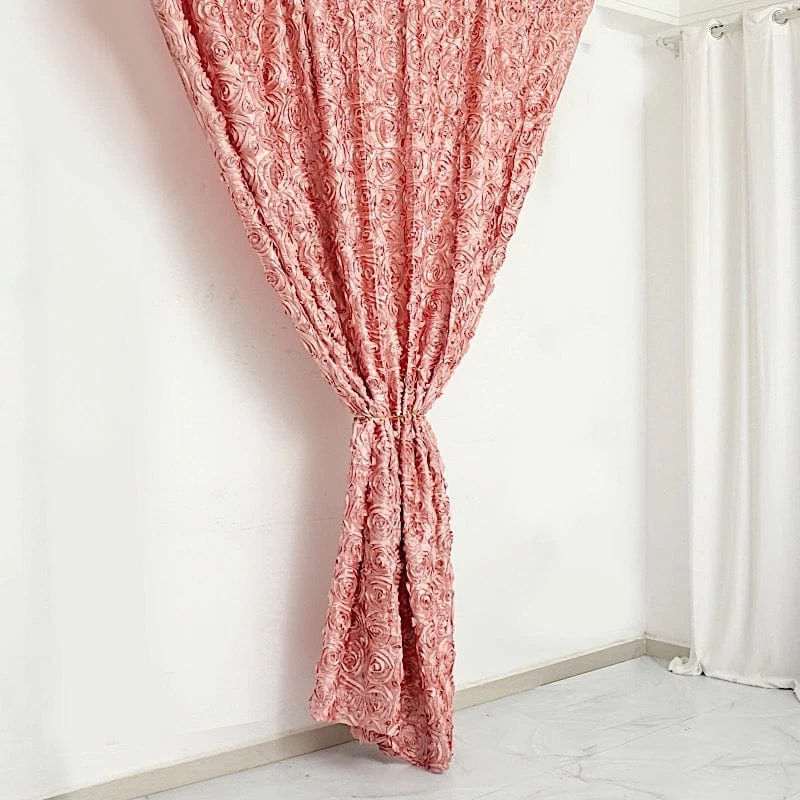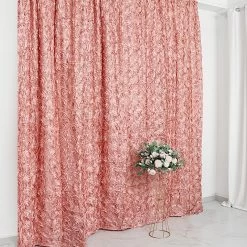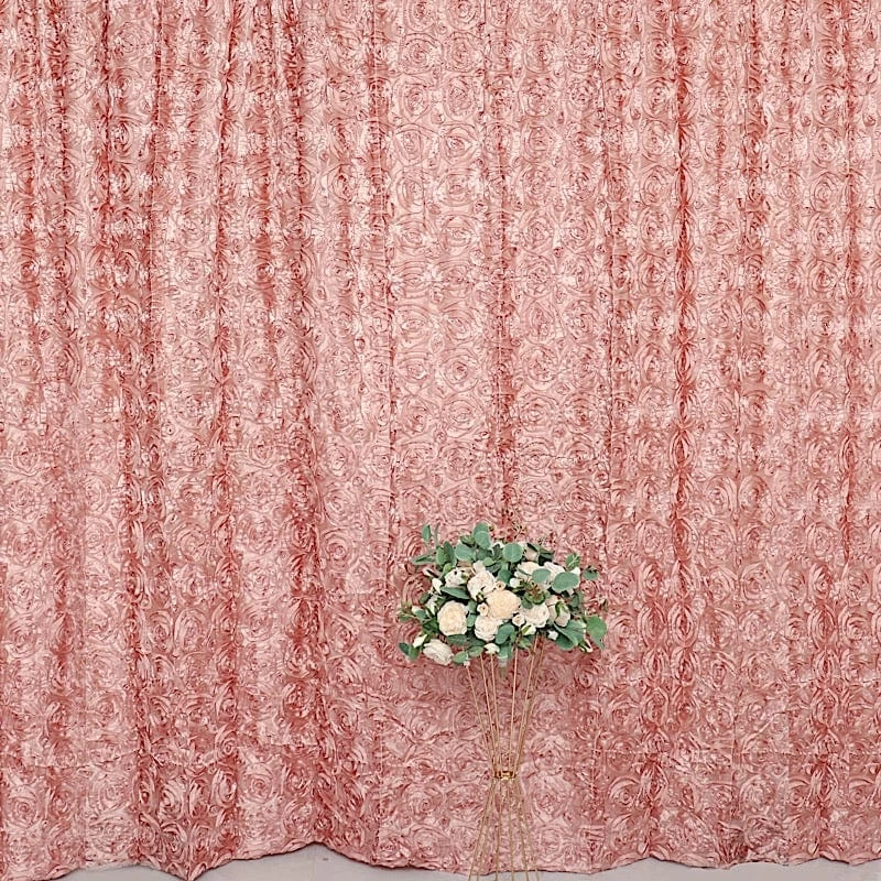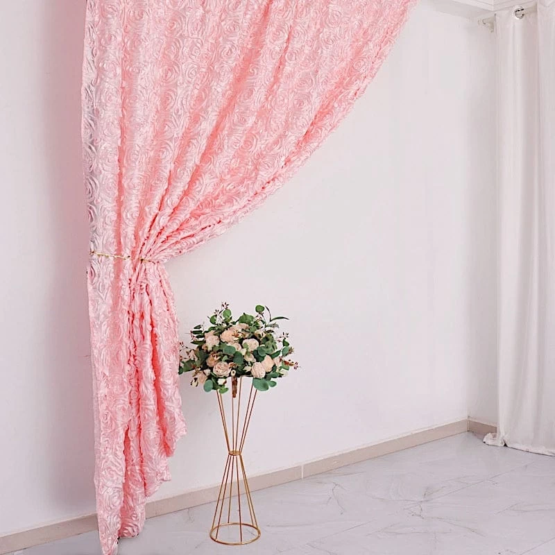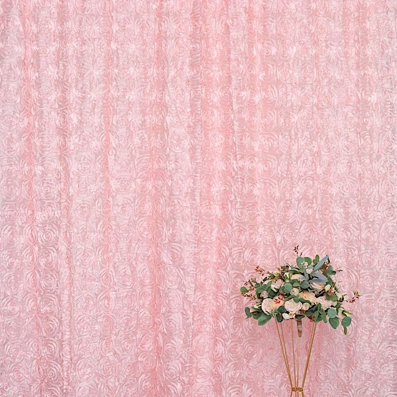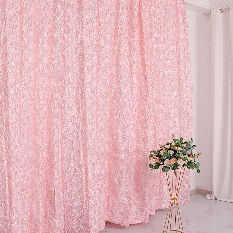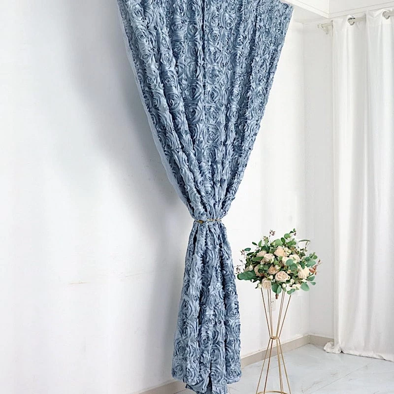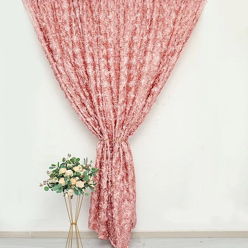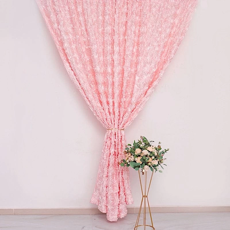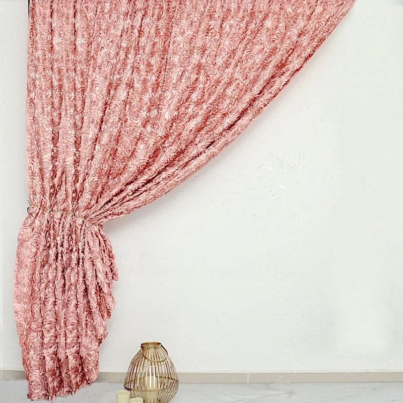 This satin backdrop curtain with a rosette design is perfect for creating an elegant atmosphere for weddings, parties, events and trade show booths. It is designed with top and bottom rod pockets so you can simply slide it into your backdrop stands to create an extra stylish look for your party or photography background. Pair this backdrop curtain with other fabric drapes, monogram or accent it with fairy lights or garlands to express your decorating style. You can also use it to decorate your home after the party is over. The possibilities are endless!