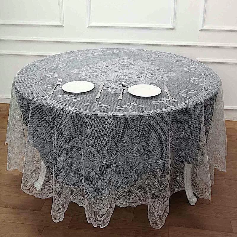 Crafted from a premium lace fabric, these gorgeous round tablecloths will be a great addition to your table decorations. These tablecloths with unique texture are sure to dress up your party tables with romantic touch and elegance. Perfect for your weddings, parties, events and any special occasions.