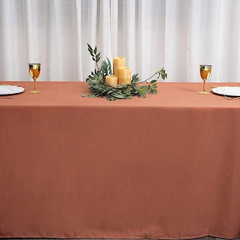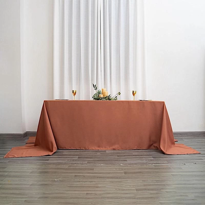 Elevate the look of your dining tablescape with simple yet elegant polyester rectangular tablecloths! Perfect for special gatherings, parties, weddings or everyday use at home, this tablecloth will let you showcase your unique decorating ideas. Choose from a variety of colors and coordinate with other table decorations to impress your guests with a truly elegant and attractive party table setup.