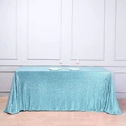 Create a sparkling sophisticated look for your event with 90″ x 156″ sequin tablecloths!