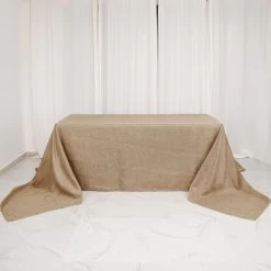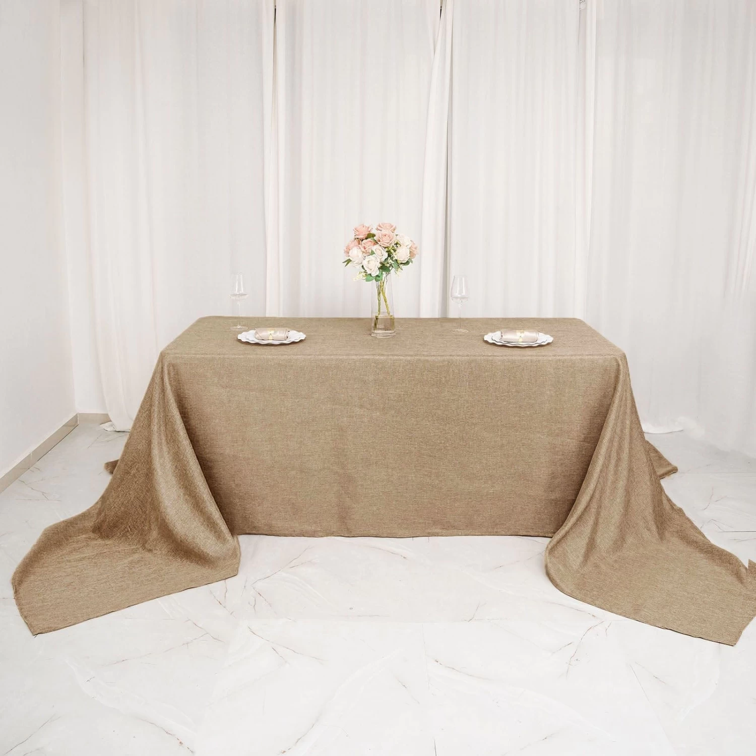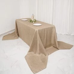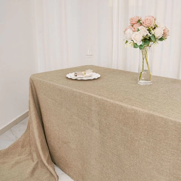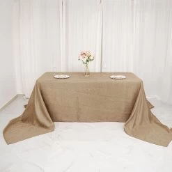 Crafted from a high quality faux burlap fabric with seamless design, this faux burlap rectangular tablecloth will be a great addition to your table decorations. These tablecloths with unique texture will dress up your party tables with country charm and rustic chic. Perfect for small family dinners, get-together, outdoor weddings, parties, events and any special occasions.
