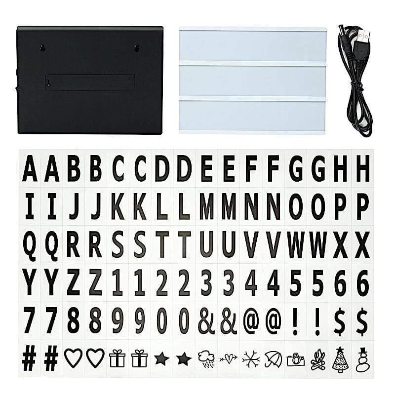 This LED lightbox will brighten up your space! Combining style and function, this light up board features high quality plastic with sheets of black marquee letters, numbers and symbols tiles that you can display across 3 backlit rows. Ideal for spelling out words or creating DIY personal messages or sweet notes, this cool white marquee light up box is perfect for personalizing home decorations or for elevating the look of your parties or wedding reception. It can be used as a wall hanging decor or table standing centerpiece to bring a touch of warmth and design to any setting. The possibilities are endless!