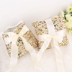 This dazzling wedding accessories set will create a festive touch for your ceremony. The charming flower girl basket and ring bearer pillow are created from velvet fabric accented with sparkling sequins and silky satin ribbons. Perfect for weddings, indoor or outdoor events or any matching themed parties. Pair them with your table covers, drapes, aisle runners and other decorative pieces to complete the look of your special day.