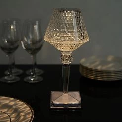 This elegant LED table lamp will bring creative lighting to your home or special occasions. Featuring a cup shape and crystal-like design with a classy light appearance, this acrylic desk lamp will jazz up any room or space. The touch switch and USB rechargeable feature will allow you to set decorative lighting for your parties, weddings and events with ease. Display this versatile LED lamp as a dining table centerpiece, place on your living room coffee or end table, study room desk, bedroom nightstand or anywhere you like to create a romantic touch of light. The possibilities are endless!