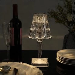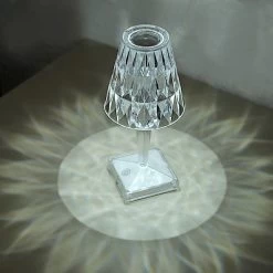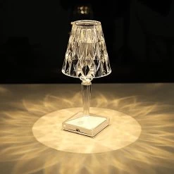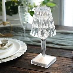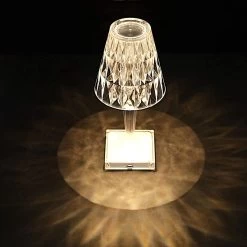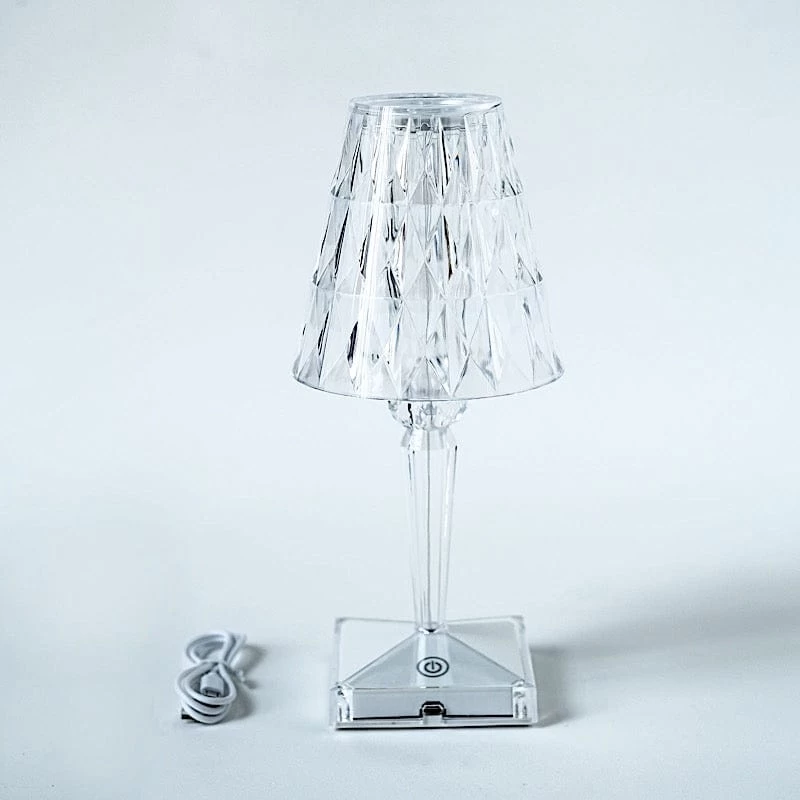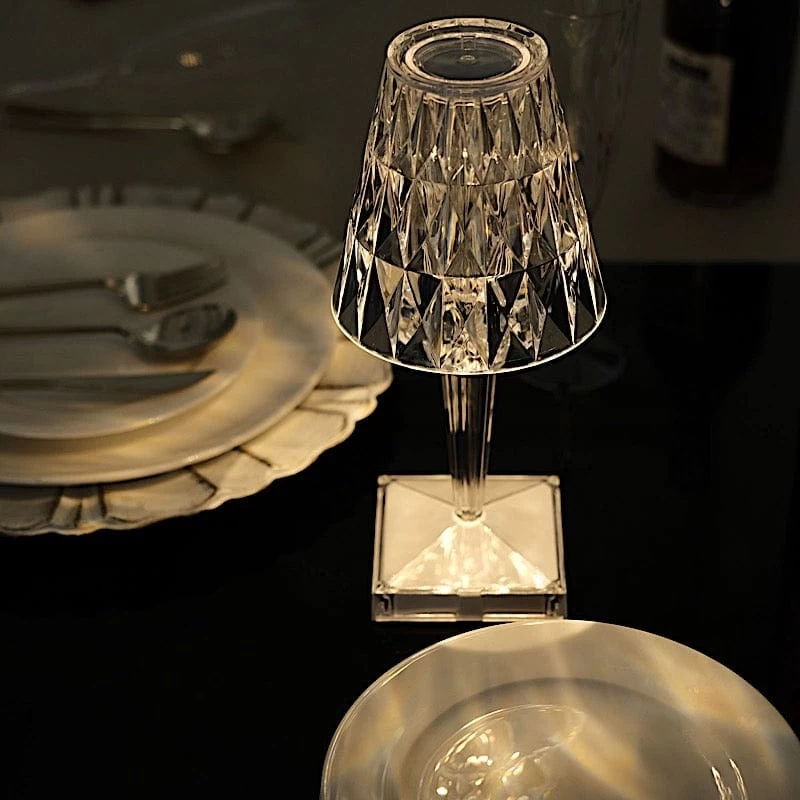 This elegant LED table lamp will bring creative lighting to your home or special occasions. Featuring a crystal-like design with a classy light appearance, this acrylic desk lamp will jazz up any room or space. The touch switch and USB rechargeable feature will allow you to set decorative lighting for your parties, weddings and events with ease. Display this versatile LED lamp as a dining table centerpiece, place it on your living room coffee or end table, study room desk, bedroom nightstand or anywhere you like to create a romantic touch of light. The possibilities are endless!