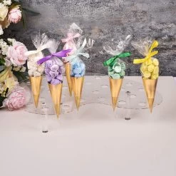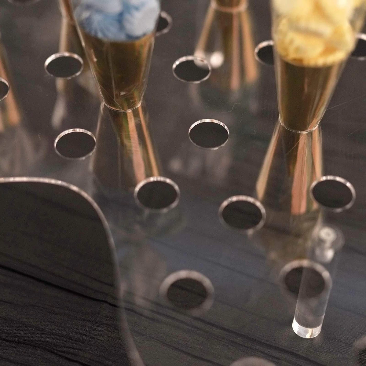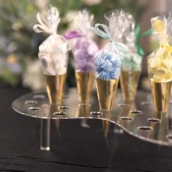 Serve your sweet treats and favors in this stylish and multipurpose acrylic mini cone display stand. This clear display stand is designed with 35 slots for your shot tubes or cone-shaped favor holders. This convenient stand can function as a serving tray or holder of your party treats and favors for birthdays, weddings parties and events. It can also be used as an organizer for small items in your home. A perfect addition to your party tables!