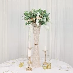Decorate your special day with this dazzling crystal-beaded hurricane metal vase! Whether showcasing hydrangeas, putting roses on display, or simply shining solo, this eye-catching vase is sure to add an extra visual appeal. Our vases are great for weddings, parties, events or simply using them in your own home. Place this elegant vase on an entryway table or used it as a centerpiece during dinner to create a perfect focal point for your decor.