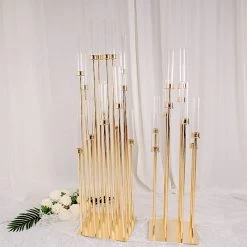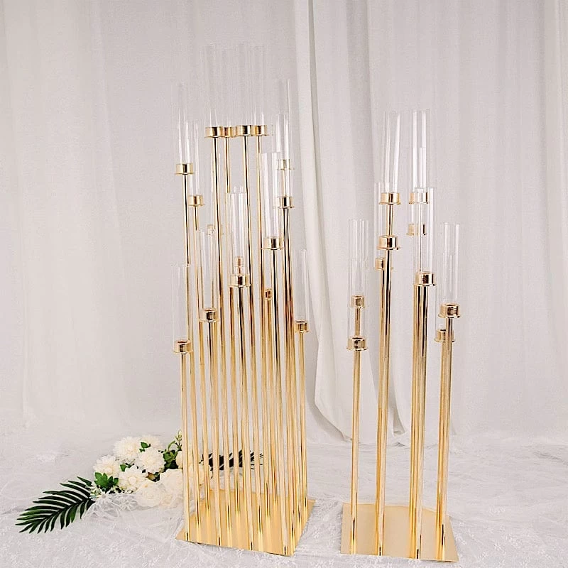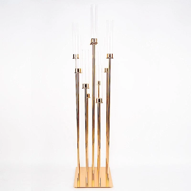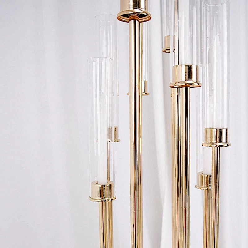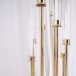 Add romance to your special day with our graceful candelabra candle holders. This 50 inches tall candle holder will add a special touch to any space. The candle holder features 10 removable glass shades that will surely create a sophisticated look for your space. This candelabra will compliment any table, entryway, dining room or anywhere else with a fun, fancy touch of light. It is perfect for weddings, events, and parties as centerpieces, or simply as decorative pieces for your home.