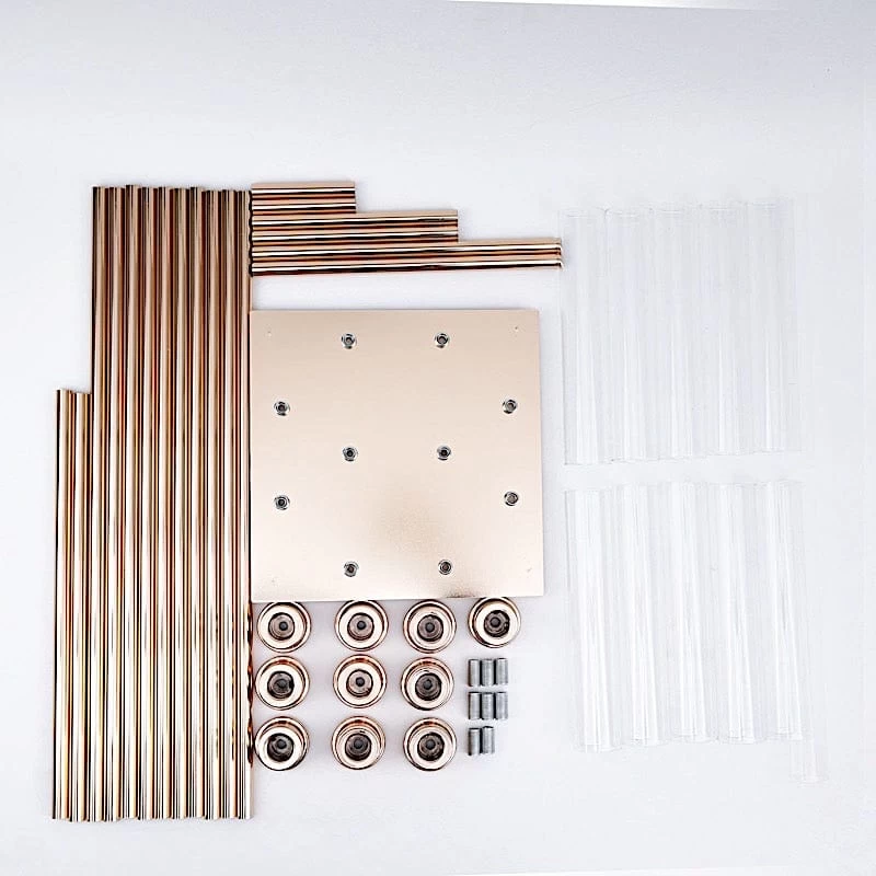 10 stems that measure approx. 33.5 to 49 inches with glass shades.