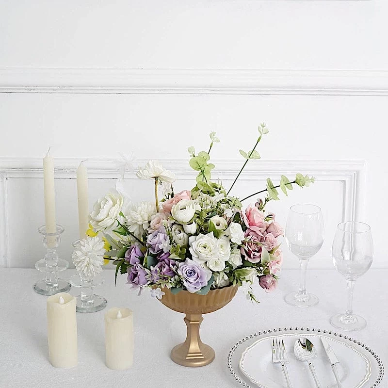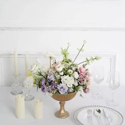 Make stylish and artistic decorations for your special day with this metal compote vase. Our vases are great for weddings, parties, events or simply using them in your own home. Pair this decorative piece with your gorgeous fresh or silk flowers, candles and other fillers to add a touch of elegance to your table centerpieces. This Roman-style vase is made from high-quality metal and is a top choice for flower shops and wedding planners.