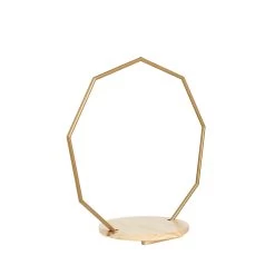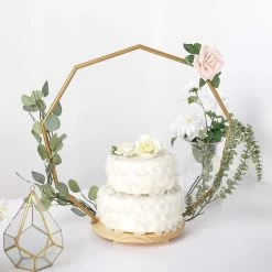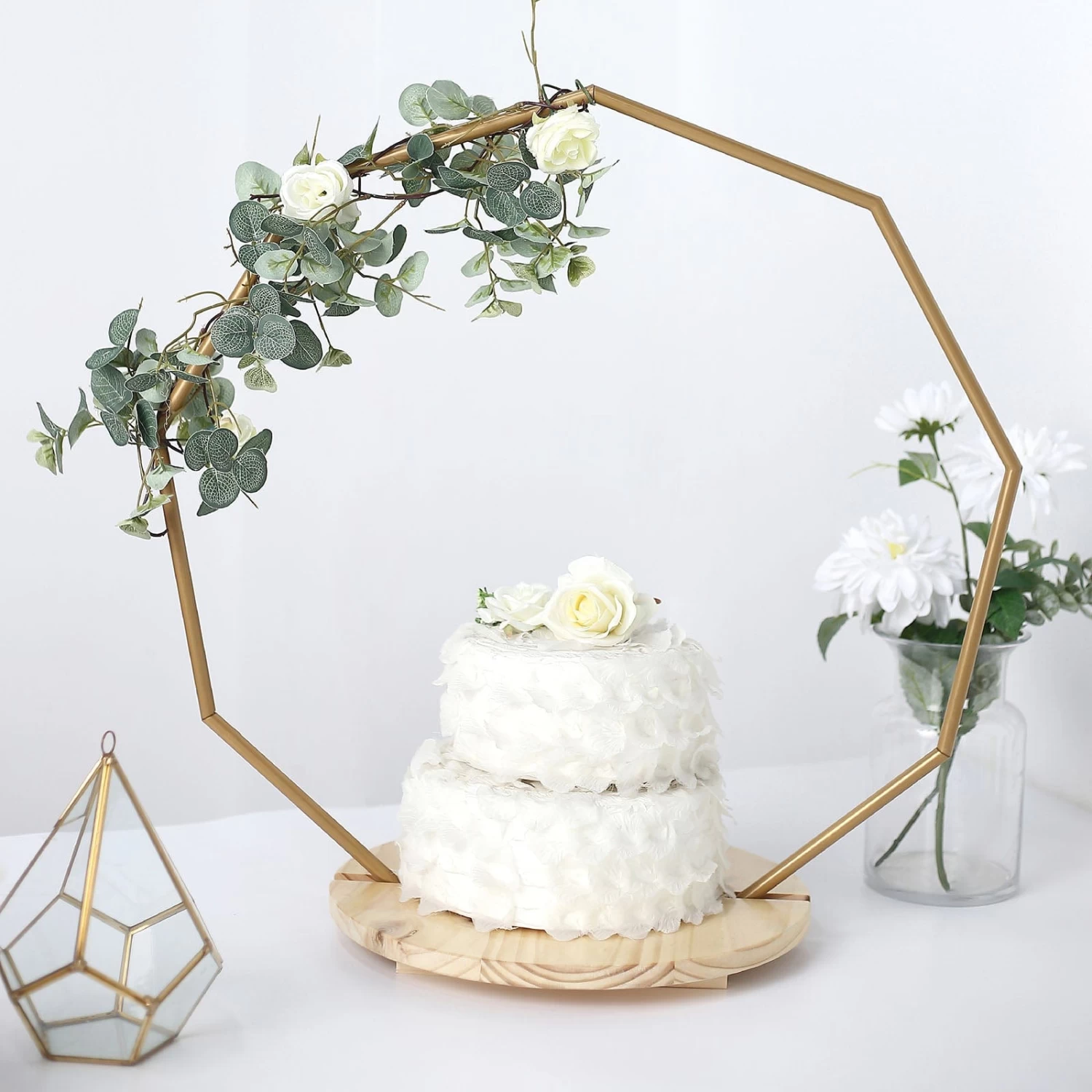 This decorative cake display stand will create an eye-catching look for your party tables. Featuring a geometric metal hoop with natural wood base, this stylish and functional display stand can be used in several ways. Use it to present your cupcakes, desserts and sweet treats in style. Make it a base for your flowers, greenery, candles or any centerpieces. The metal arch can be accented with LED lights or garlands to add charm to your dessert station. The possibilities are endless! This cake stand will also make a perfect gift for family and friends.