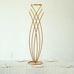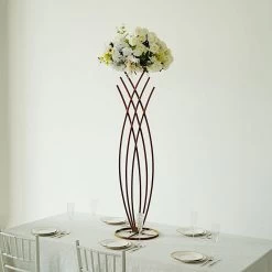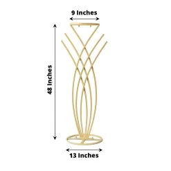 Enhance your special day with stylish flower stands! Crafted from metal with a gold finish, this mermaid tail-like centerpiece will add an elegant look to your tabletops. Easy to pair with other table decorations and can be accented with a variety of flowers and greenery. This sturdy and versatile flower pedestal can also be used as a floor accent or backdrop decor for weddings, parties and events or simply as a decorative piece for your home or office.