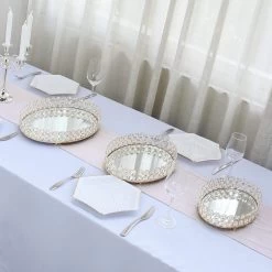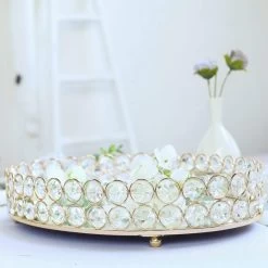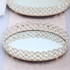 Create the perfect mood for every dinner occasion with this stunning serving tray! Featuring gold metal rings border with faux crystal beads, this mirror tray can be used as a centerpiece to enhance the appearance of your reception tables. Pair it with your lovely flowers and elegant candles to surprise your guests with a charming and unique tablescape. Great for gifting to friends and family.