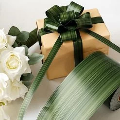 This green ribbon will add a natural touch to your DIY craft projects! Great accent for your cake decor, vases, candles, floral bouquets and arrangements, centerpieces, holiday decor and more. Created from high quality satin with a double-sided Ti leaf pattern, this ribbon will bring charm to your party decorations. The possibilities are endless! Wrap your gifts and embellish them with this ribbon for an earthy look. The perfect addition to your weddings, parties or events or any arts and crafts decorations.
