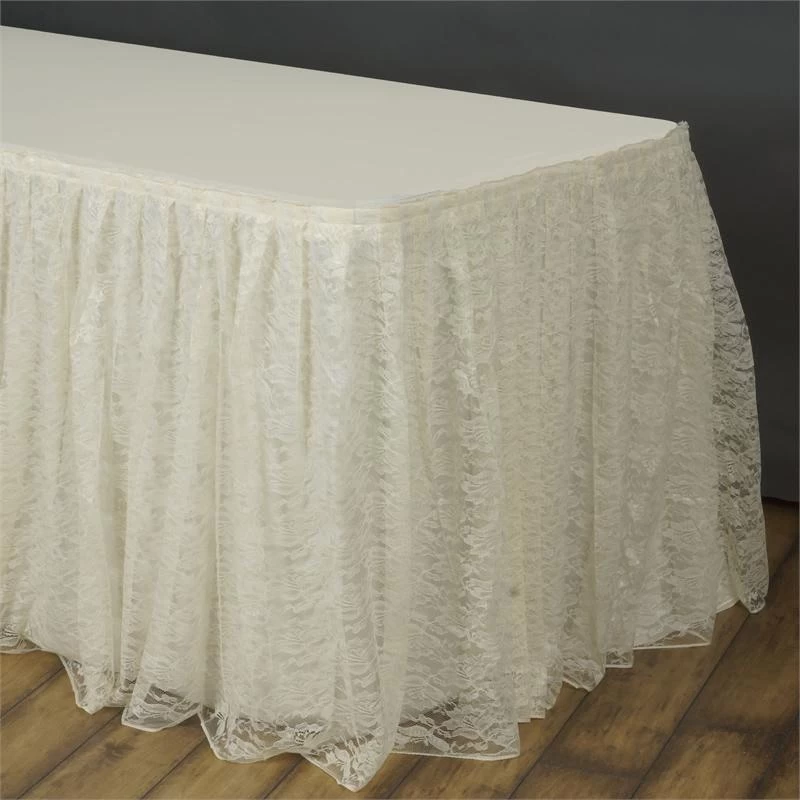 Celebrate your special day and set particularly welcoming tables for your wedding reception or party with these beautiful romantic lace table skirts. Decorating is easy with this lace banquet tables. All table skirts come with velcro on top for attachment to clips so they could be easily attached to your tables.