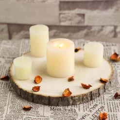 This round wooden slice has a rustic natural finish. Create instant ambiance at your next party by placing round wooden slices as centerpieces or party favors on tables with greenery, succulents or colorful flowers. Make a personalized base for your displays or small craft supplies after the party is over.