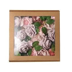 Box includes 14 foam roses, 2 foam peonies, 3 silk daisies, 2 silk hydrangeas, 4 eucalyptus stems and 2 leaf accessories.