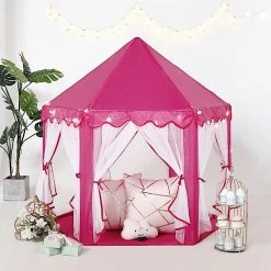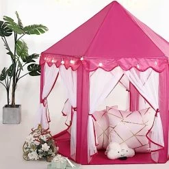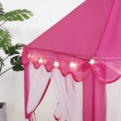 This play tent will allow your kids to play with creativity and enjoy personal space and time. Featuring a high quality polyester fabric with sturdy poles and designed with curtains and star LED garlands, this play tent will be a perfect addition to your kid’s playroom decor. Place it around your patios, backyard or anywhere around your home to provide a lovely space for your child or simply bring it on your next family outdoor adventures. It is also a great gifting idea for children, family and friends!