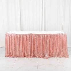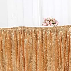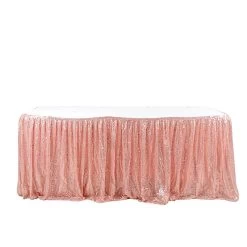 Complete the look of your party tables with dazzling table skirts! Featuring a pleated design with lightweight satin backing, this sequin table skirt will add sparkle to any celebration. Perfect for setting welcoming tables for your wedding receptions, parties, parties or any special dinner occasions. This table skirt comes with velcro on top for attachment to clips so they could be easily attached to your tables.
