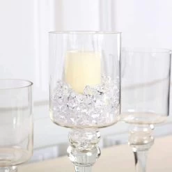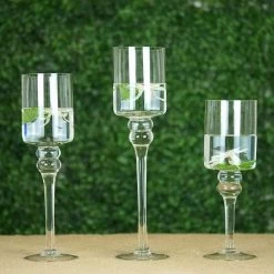 Accent your special day with the graceful clear candle holders! Featuring raised cylindrical tops on long stems, these lovely candle holders lends a touch of chic style to your mantel or console table. These vases are great for weddings, parties, events or simply using it in your own home.