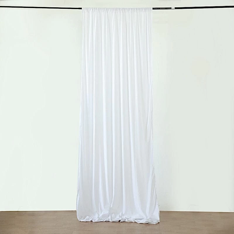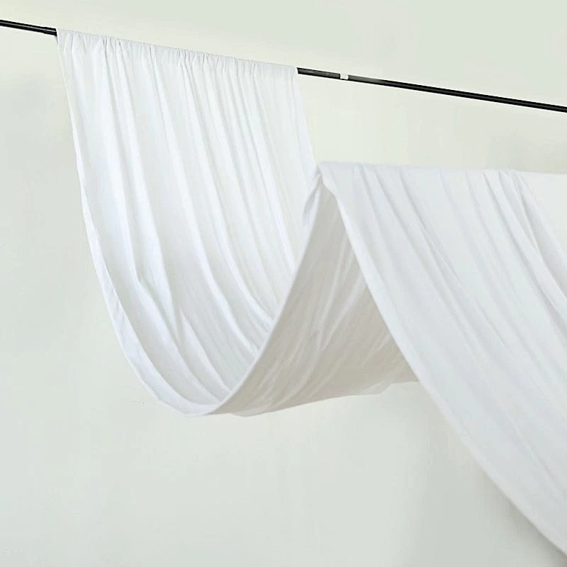 Enhance the look of your party room with premium polyester fabric drapes. This affordable, reusable and fire-retardant drapery fabric is a great choice to decorate your ceilings and create a breathtaking scene for your weddings, parties and events. It is also made with rod pockets at both ends for easy use. The possibilities are endless! This draping fabric is perfect for styling your photo backdrops, stage, archways, or even your ceilings or windows at home.